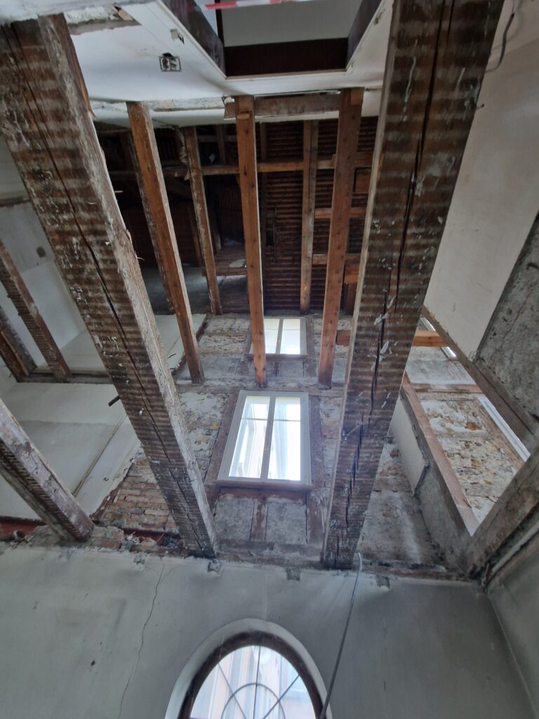 Bis zum Sommer 2026 wird der Kopfbau des Professorenheimes renoviert. Traditionell wird er „Schlössli“ genannt, weil er ursprünglich als Gutshaus konzipiert war.  An dieses stattliche Herrenhaus wurde 1928 und 1929 das eigentliche Professorenheim angebaut. Seit dem Kauf 1866 diente das Schlössli den Benediktinern als Wohnhaus. Nach Vollendung des Erweiterungsbaues wurde es vorallem von den vielen Klostergästen genutzt.